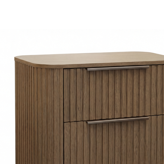 - Fluted Detailing in a Warm Oak Finish