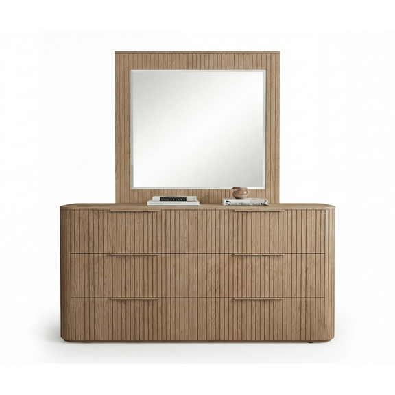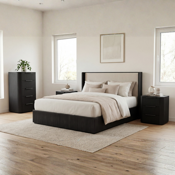 Discover a refined bedroom collection where timeless craftmanship meets modern innovation. The fluted detailing in a warm oak finish brings a classic architectural elegance, while the upholstered bed introduces a touch of contemporary luxury. A perfect harmony of tradition and modernity-designed to elevate your everyday living.