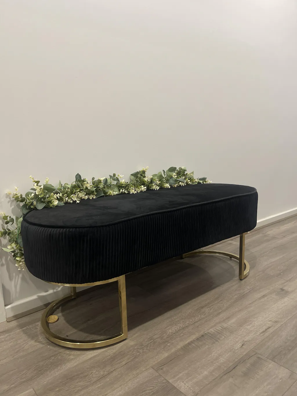 Noori Bench Chair Velvet Fabric Upholstered Wooden Frame Iron Feet