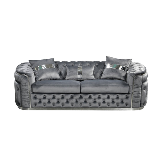 Duke 3+1+1 Seater Sofa Velvet Solid Wood Plywood Gold/Silver Stainless Steel