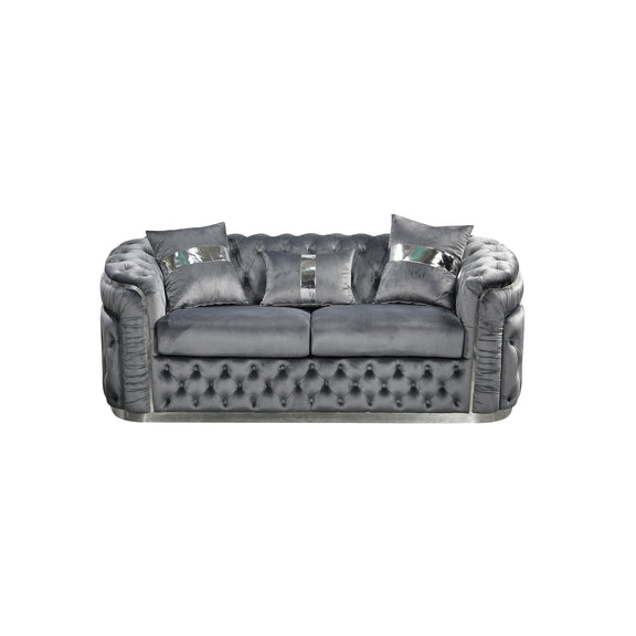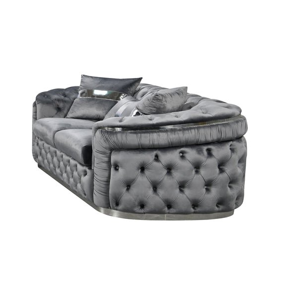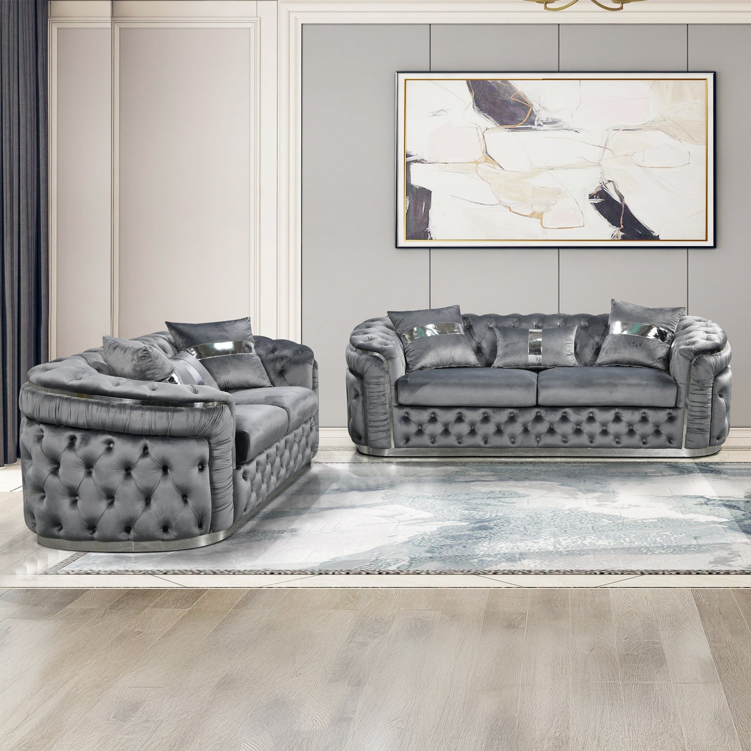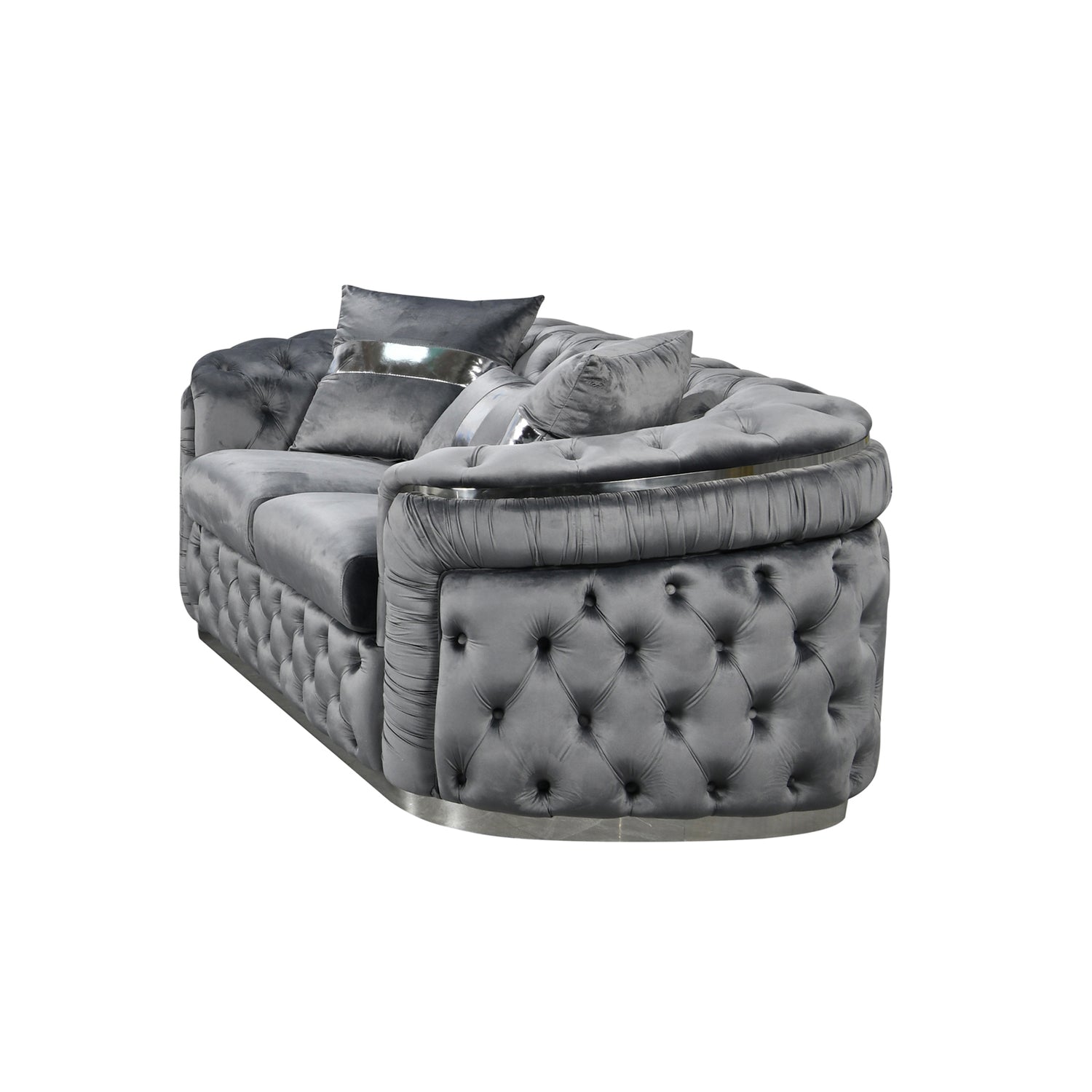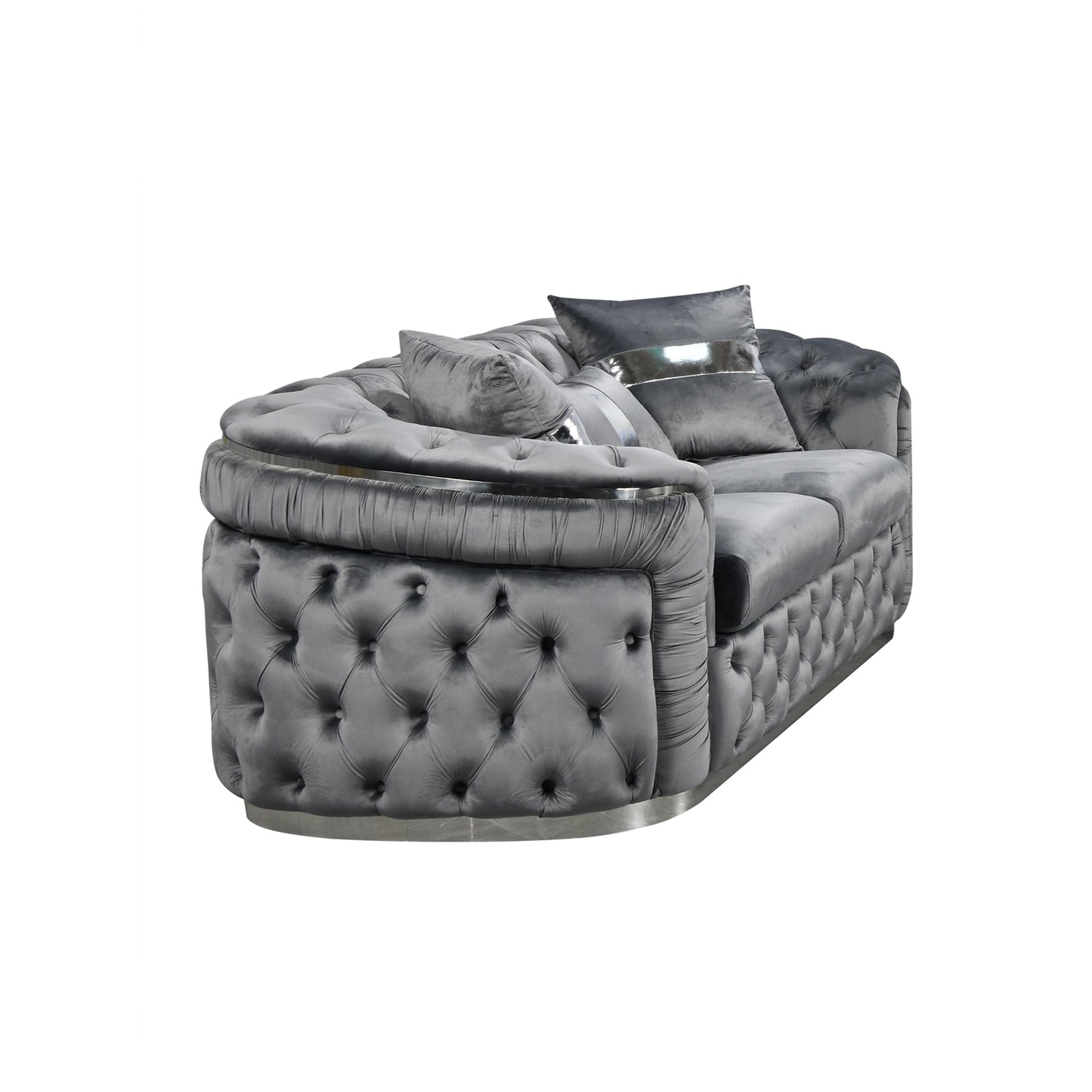 Duke 3+2 Seater Sofa Velvet Solid Wood Plywood Gold/Silver Stainless Steel