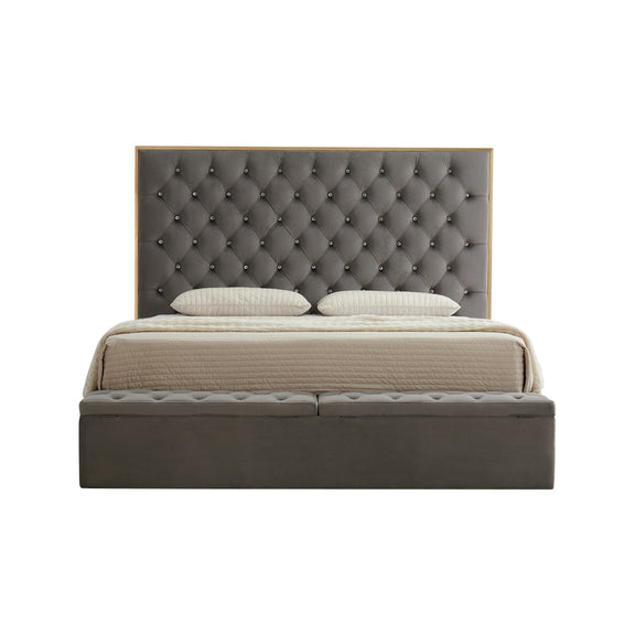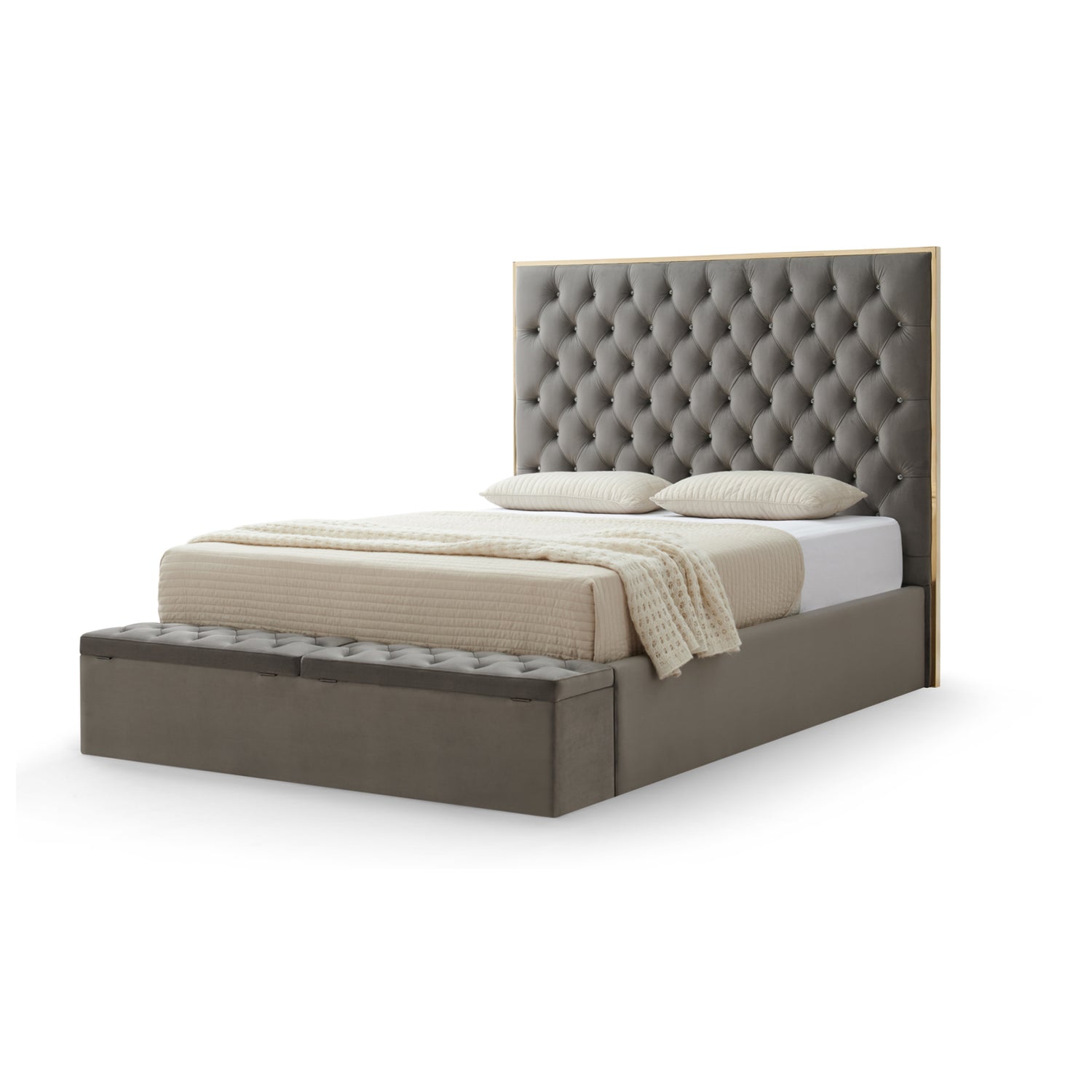 Helena Multiple Sizes Bed Frame Fabric Upholstery Tufted Headboard Slats Storage