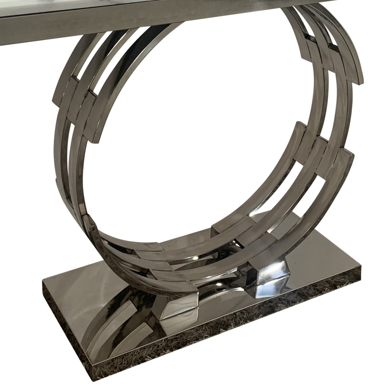 This beautiful Hall Table is accented with a gorgeous metal base in Silver colour. Stainless electroplating on it provides smooth and durable finish. Its aesthetic metal made design is sure to draw attention.