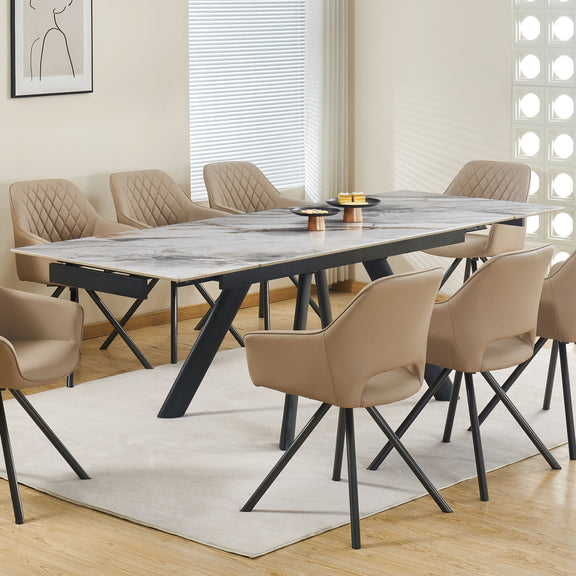 Lena Sintered Stone Top Sturdy Feet Powder Coating Dining Table