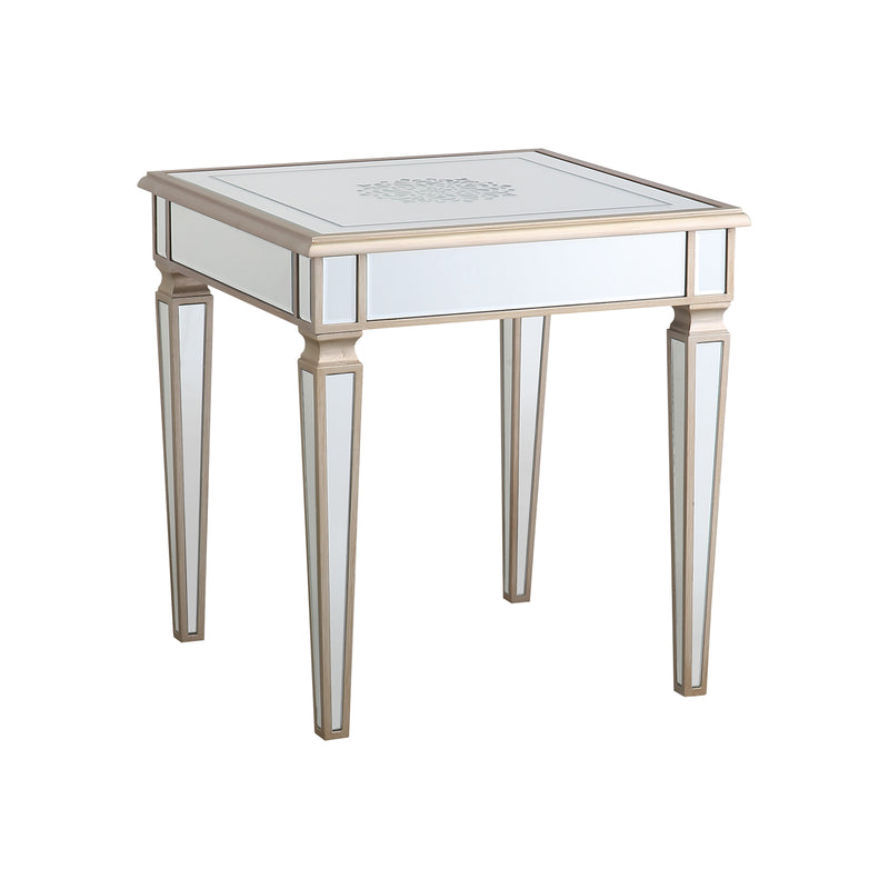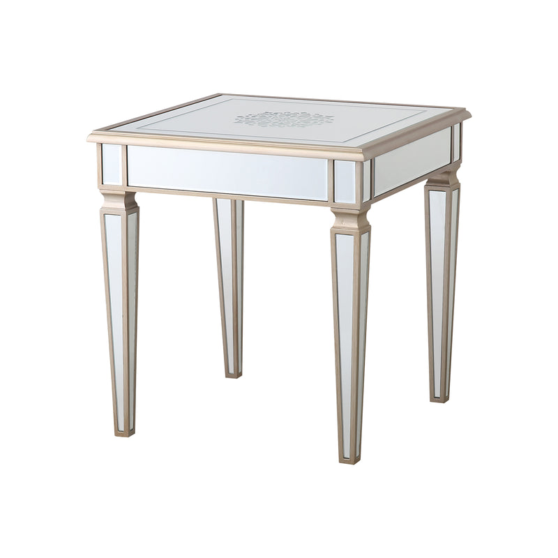 Antique Gold Mirrored Lamp Table MDF Construction with Wooden Legs