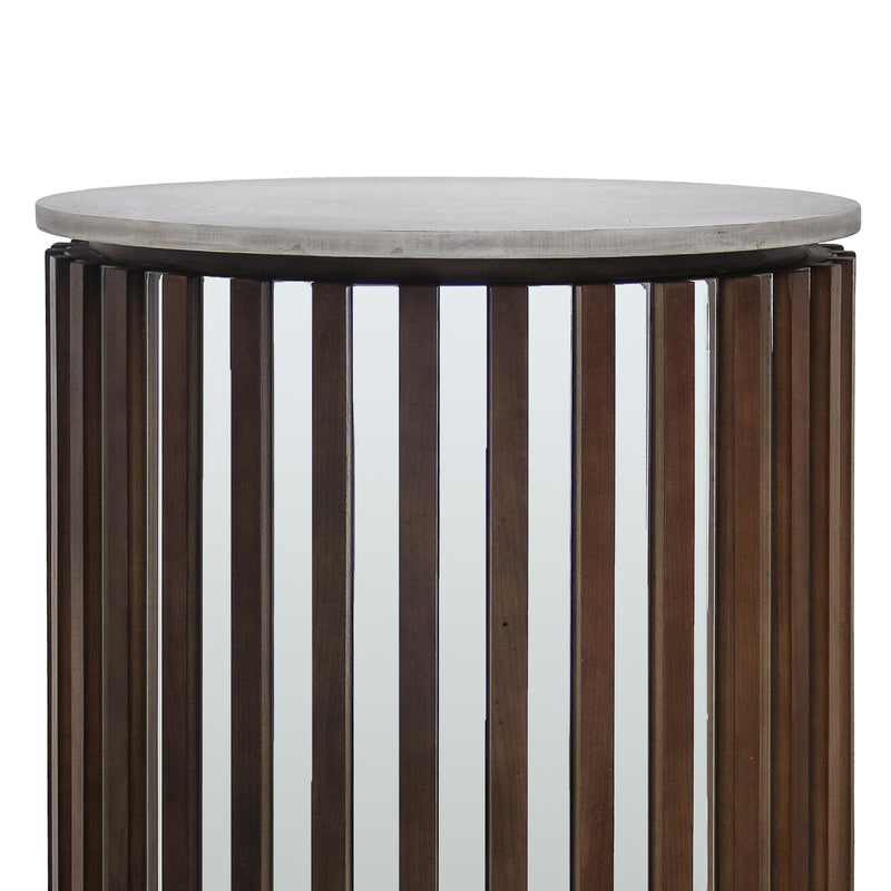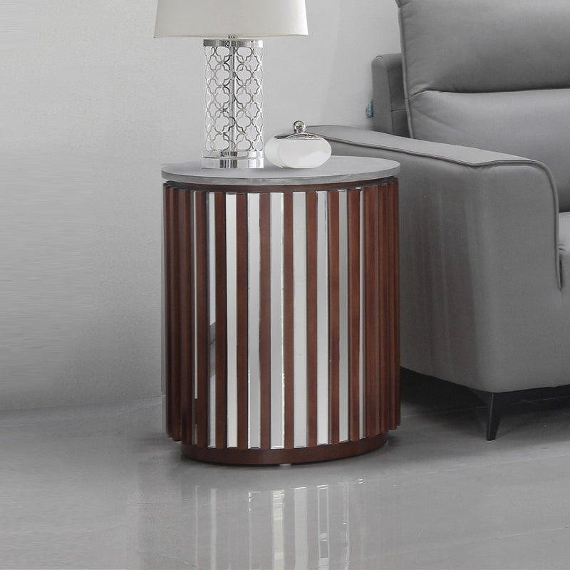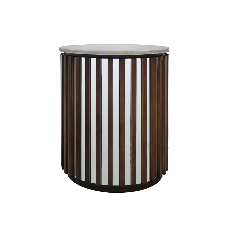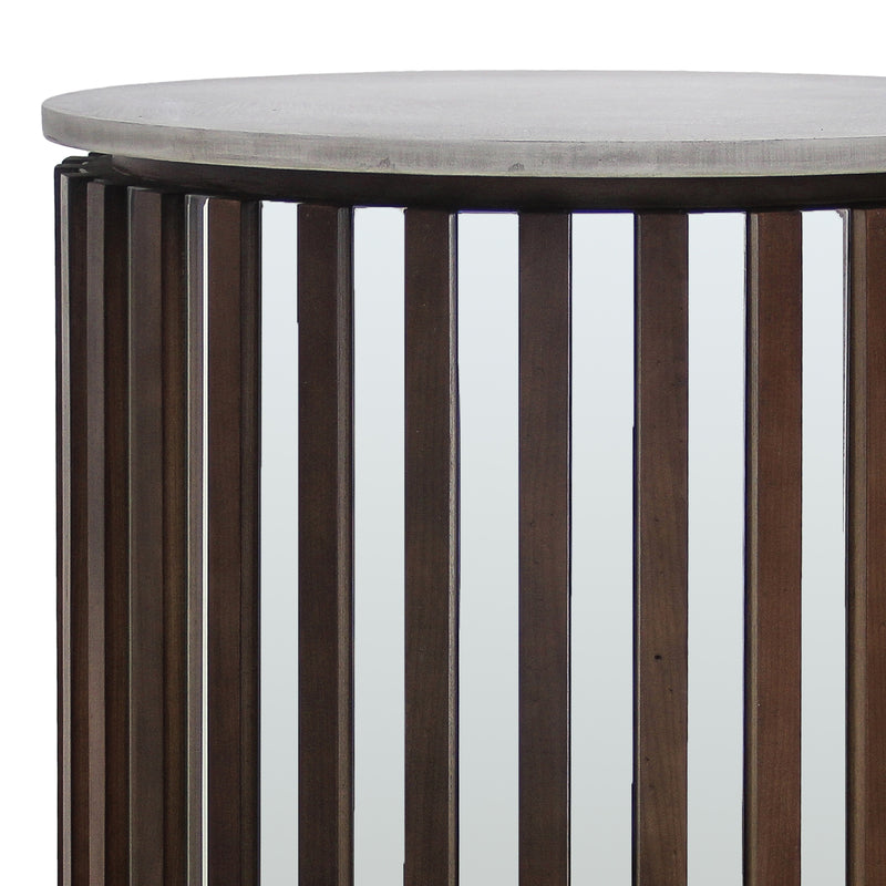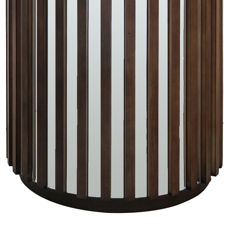 Rico Lamp Table Round Shaped Top MDF Silver Mirror Micro Brown Base