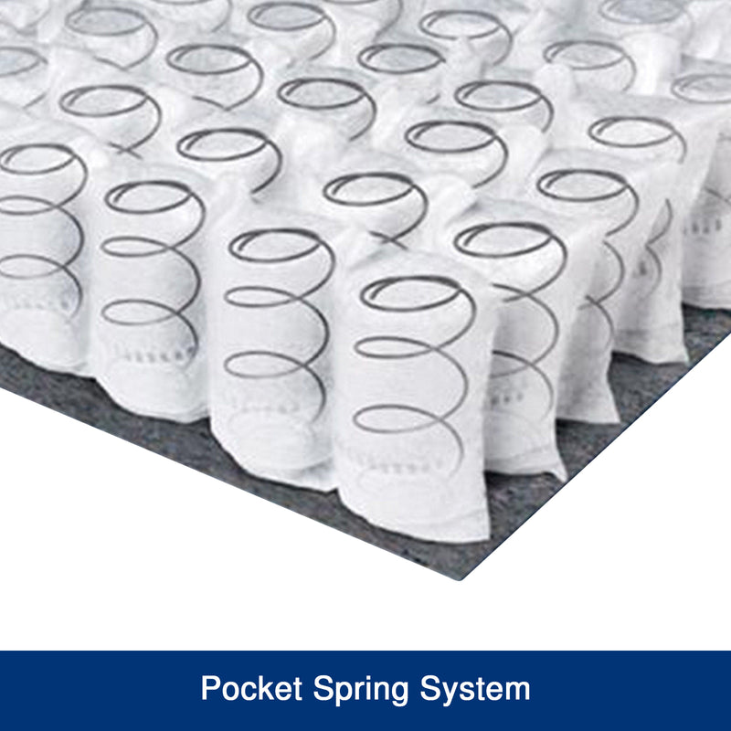 Individual Zoned Pocket Springs works independently that provides varying and appropriate levels of support to different areas of the body (such as the head, chest, hips or ankles) based on weight. This is 6 Turn Coil System with each independent operating coil you will feel less movement from your partner unlike a traditional inner spring that has interconnecting wires between coils.