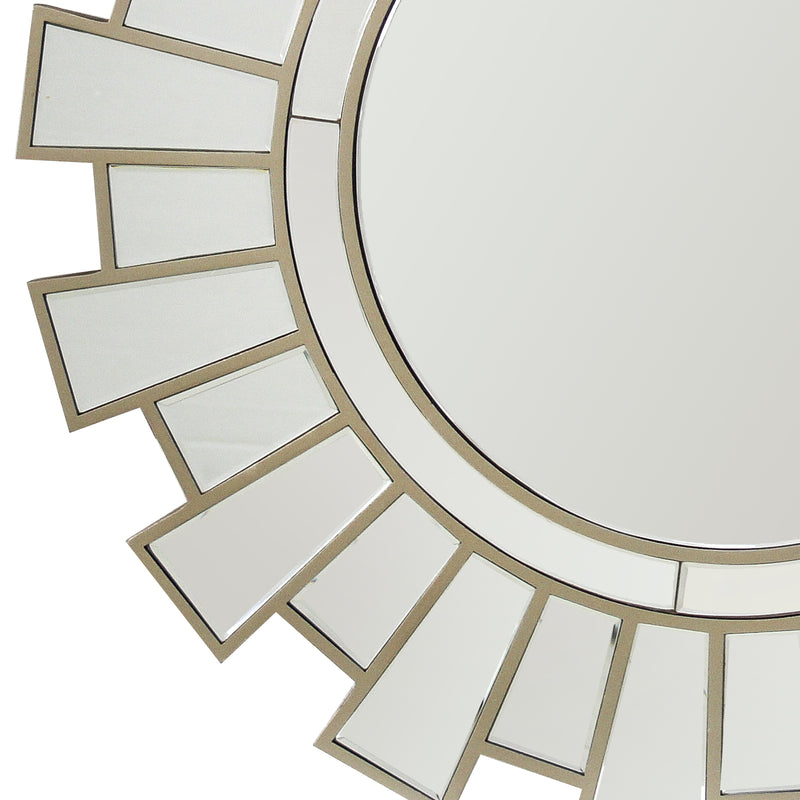 This wall mirror is made of high quality MDF and Glass. MDF ensures strong construction while the high quality glass provides clear and undistorted image. Moreover, its unique design would add charm to any modern home.