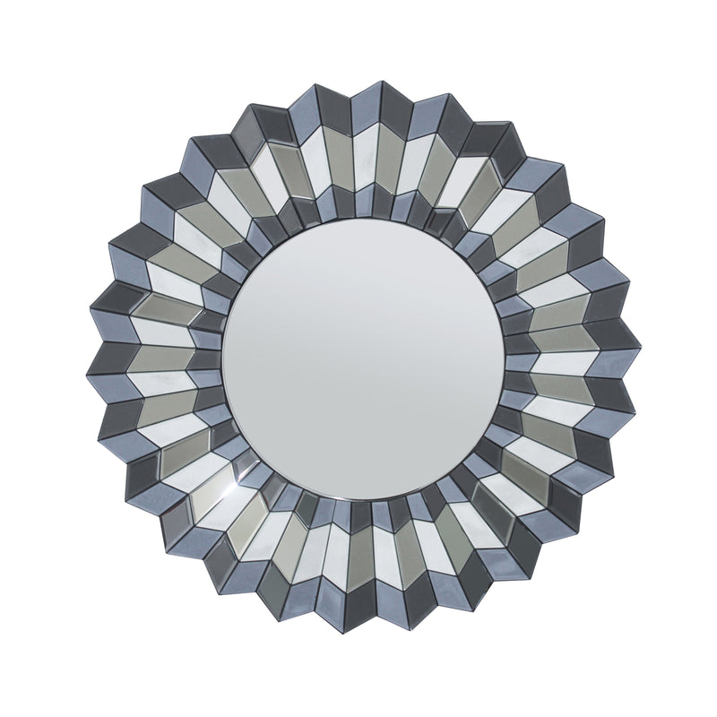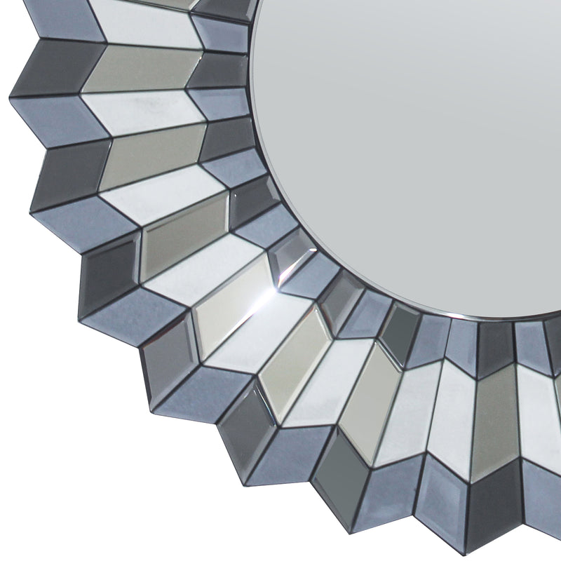 Decorative Round Wall Mirror with Geometric Design and Silver Accents