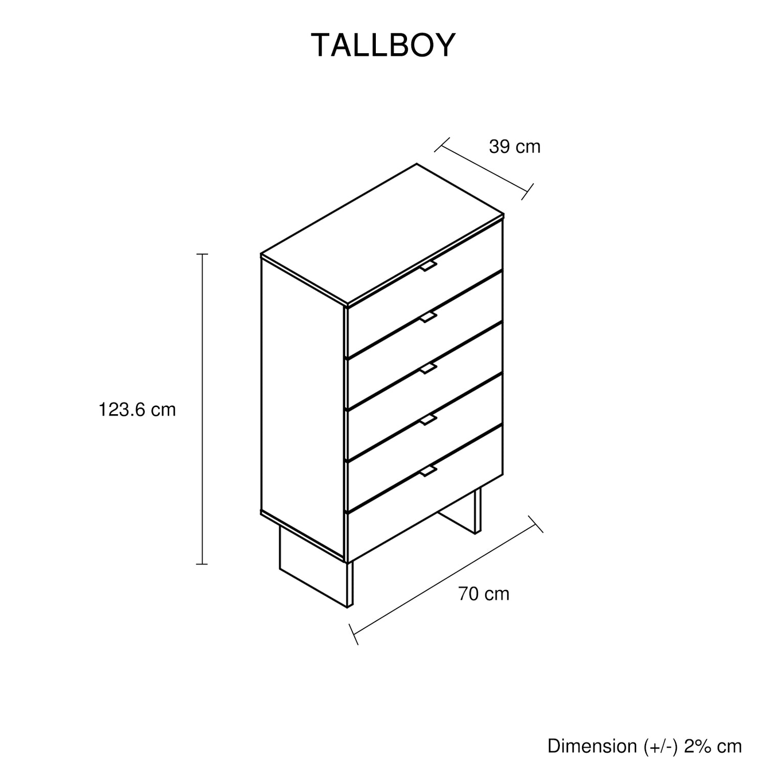 - Five Storage Drawers on Tallboy