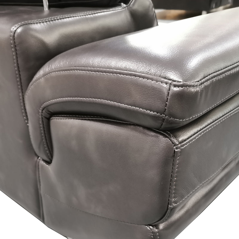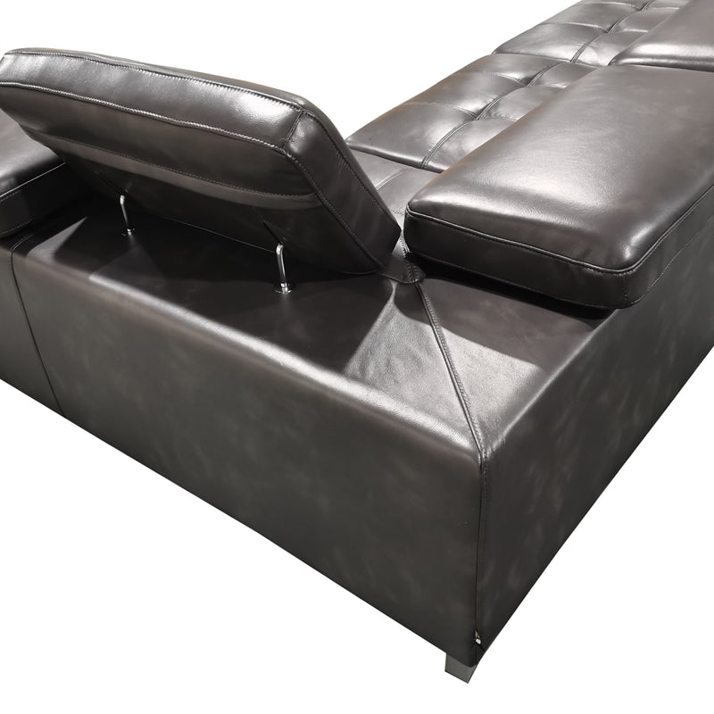 Bring a touch of elegance and functionality to your living room with our Modern Grey Leatherette Corner Sofa. Expertly upholstered in premium-quality artificial leather, this sofa combines contemporary design with everyday practicality. Its sleek dark grey tone, highlighted by stylish white stitching on the quilted back cushions, creates a refined and timeless look perfect for modern homes.