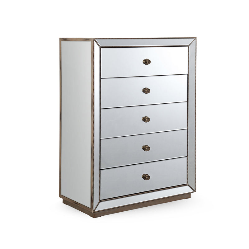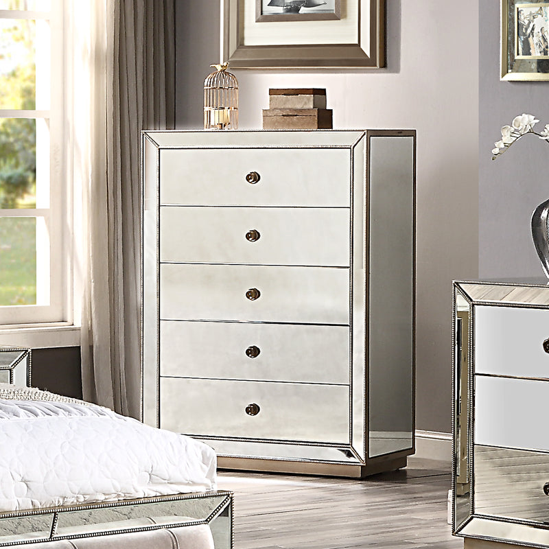Germany MDF Silver Colour 5 Drawers Mirrored Work Tallboy